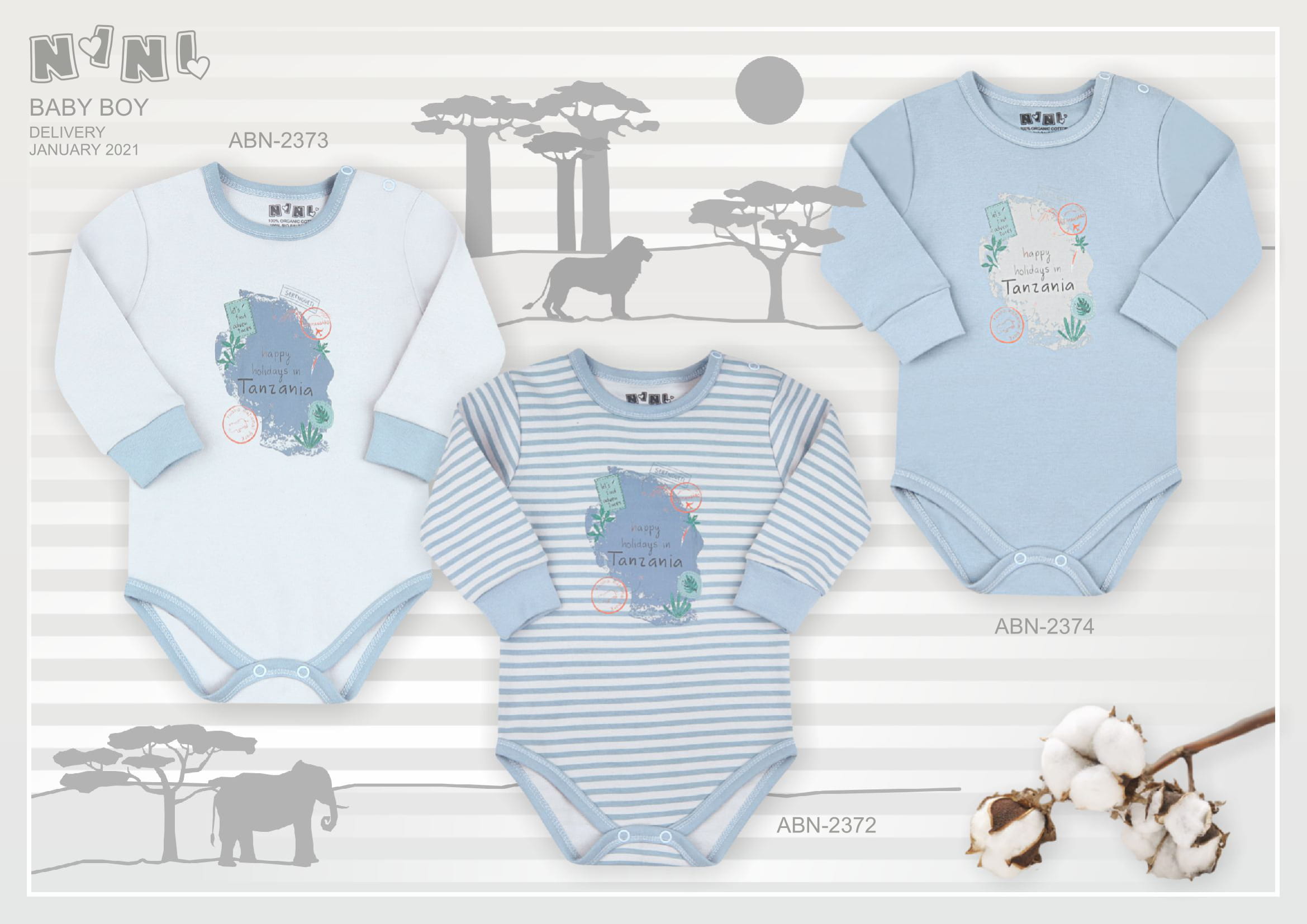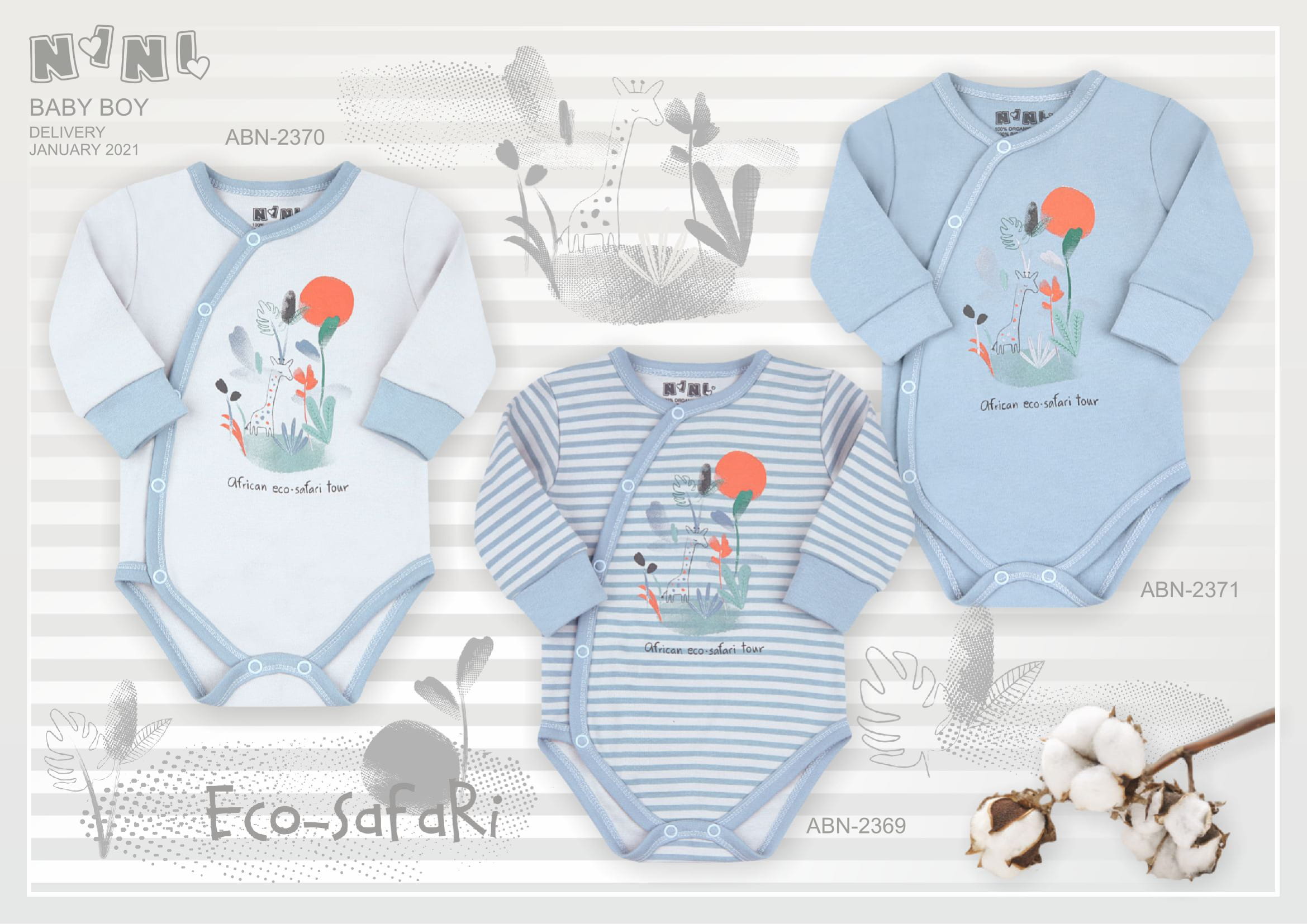 Co kryje najnowsza kolekcja marki Nini? Niesamowitą przygodę dla najmłodszych chłopców, podczas której poznacie wspólnie afrykańskie safari! Kolekcja zawiera wszystkie najpotrzebniejsze elementy garderoby niemowlęcej dla Baby chłopca, tj. body, spodnie, półśpiochy, koszulki, bluzy i wiele innych. Kolekcja "Afrykańskie eko-safari" to połączenie różnych odcieni koloru niebieskiego, motywów gładkich i w paseczki oraz printów obrazujących piękno safari. Na nadrukach widnieją także zwierzęta mieszkające na tym terenie. Ubranka polskiego producenta odzieży niemowlęcej Nini to obowiązkowe pozycje w szafie Waszych pociech!