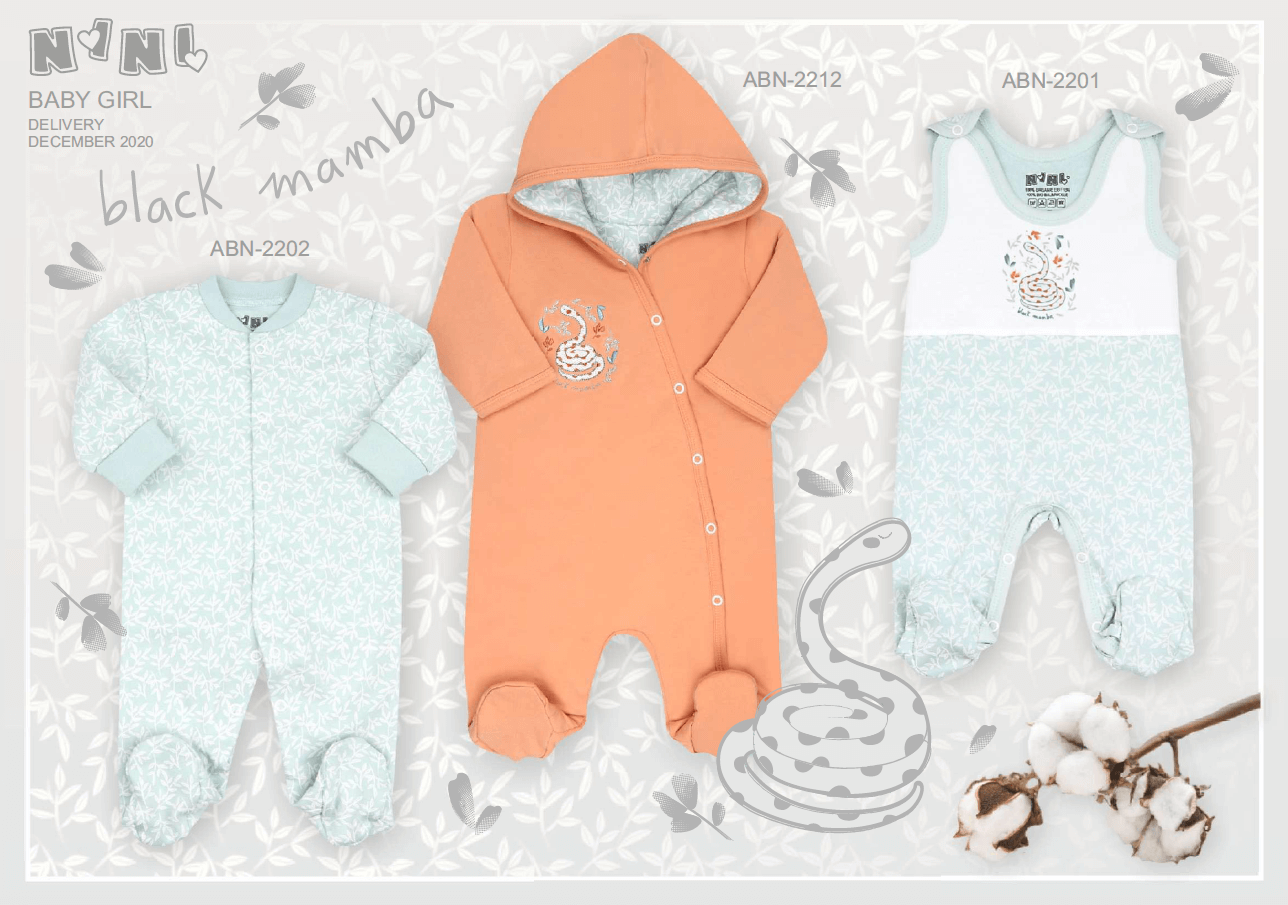 Co kryje się pod nazwą kolekcji polskiego producenta ubranek niemowlęcych "Black Mamba"? Piękne, pomarańczowe i niebieskie elementy garderoby niemowlęcej dla dziewczynki! Dlaczego "Black Mamba"? Ponieważ motywem przewodnim jest wąż stanowiący dekorację ubranek, oraz dodatkowo print z ornamentem roślinnym. Kolekcja zawiera wszystko, co niezbędne dla naszych małych księżniczek: wygodne body, urocze czapeczki, bluzeczki i spodnie, a także wiele innych. Jeśli jeszcze nie mieliście okazji poznać tej wyjątkowej kolekcji, koniecznie trzeba to zmienić!