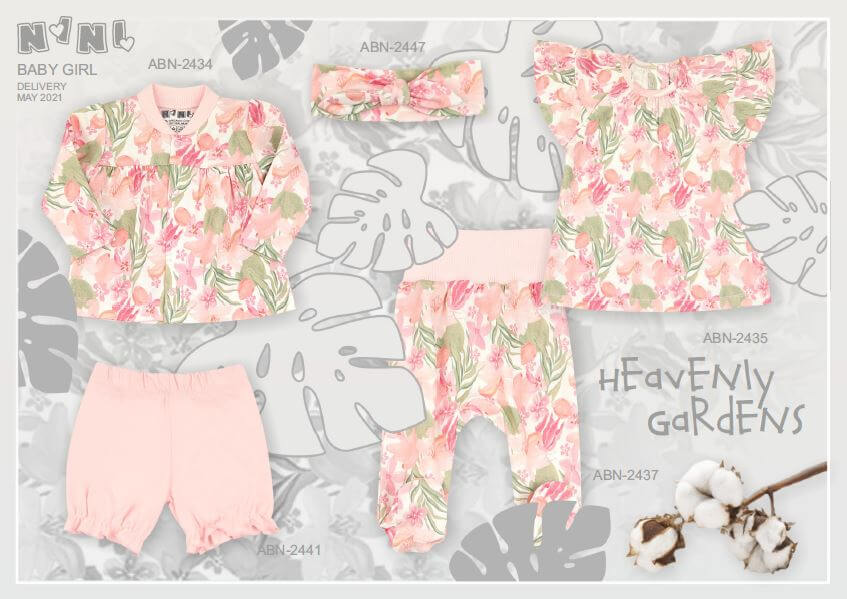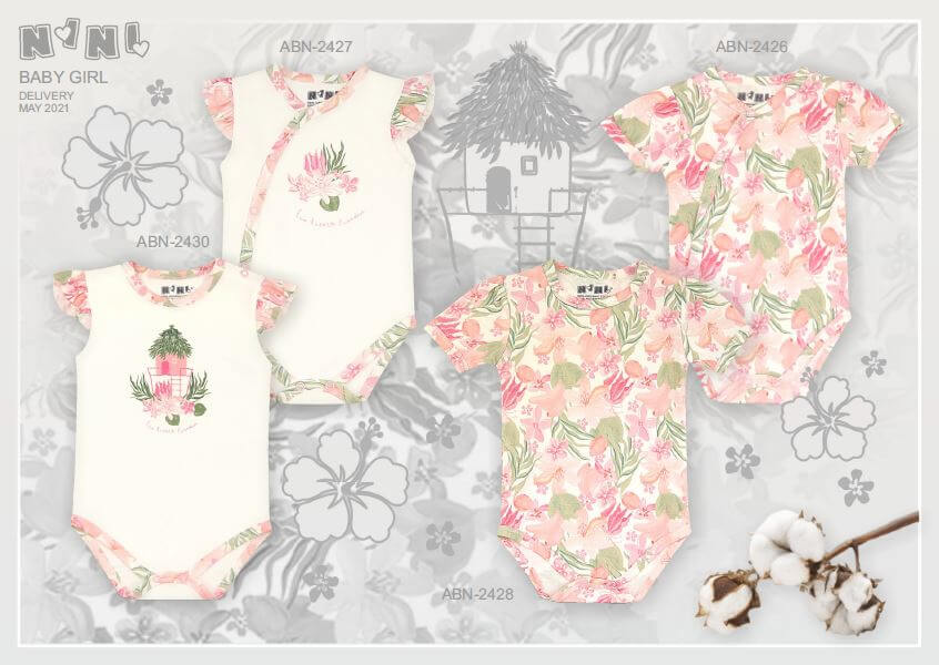 Najnowsza różowo-kwiatowa kolekcja ubranek dla dziewczynki z bawełny organicznej NiNi Kwiatowe Love. Printy w kwiaty i listki wykonane są w druku cyfrowym, dzięki czemu wzór jest bardzo trwały. Kolekcja zawiera wszystko, co niezbędne dla naszych małych księżniczek: wygodne body niemowlęce, urocze czapeczki dla dzieci, półśpiochy i spodnie, a także bawełniane sukienki. Zapraszamy do zapoznania się z kolekcją Nini Kwiatowe Love!